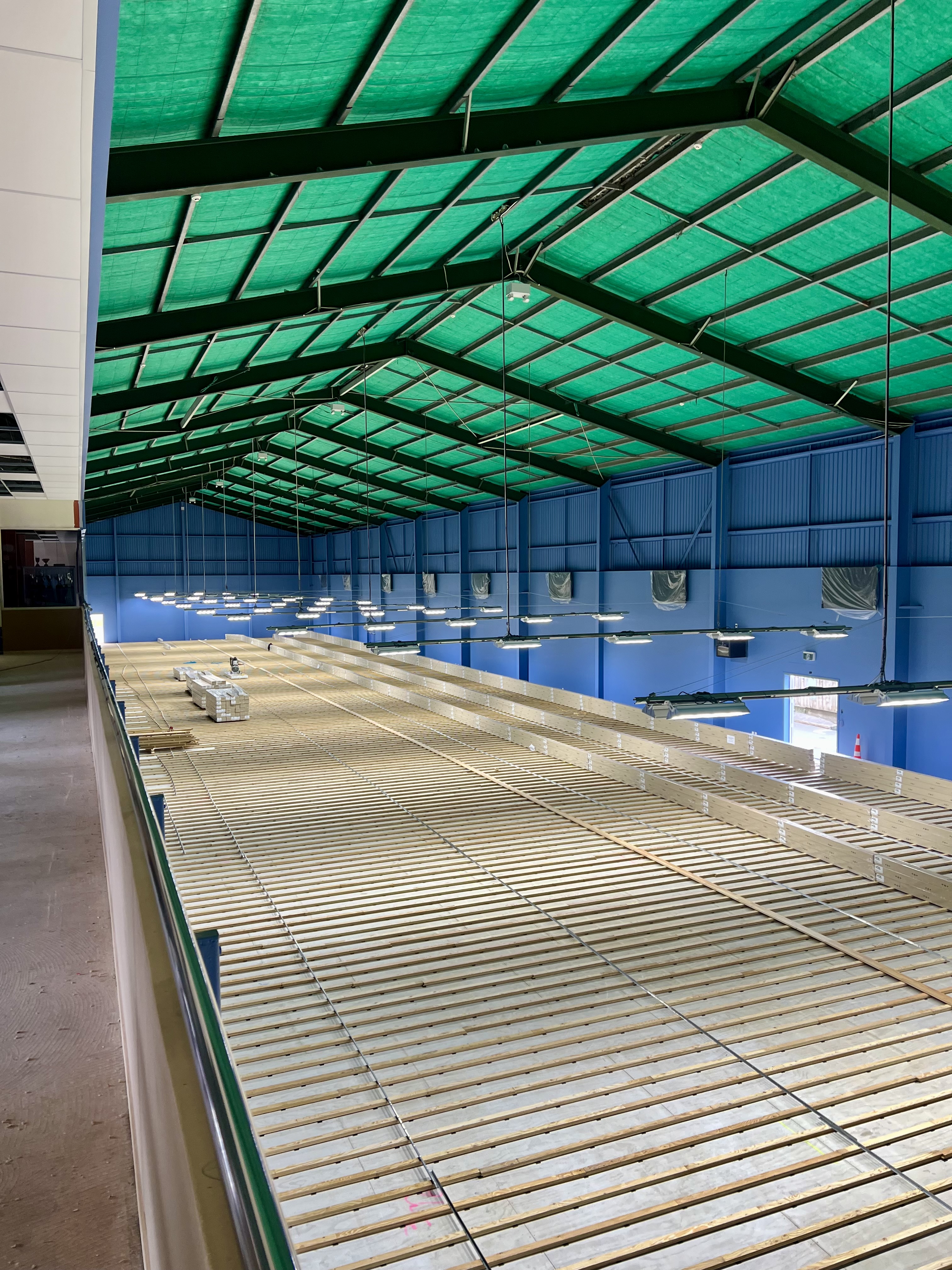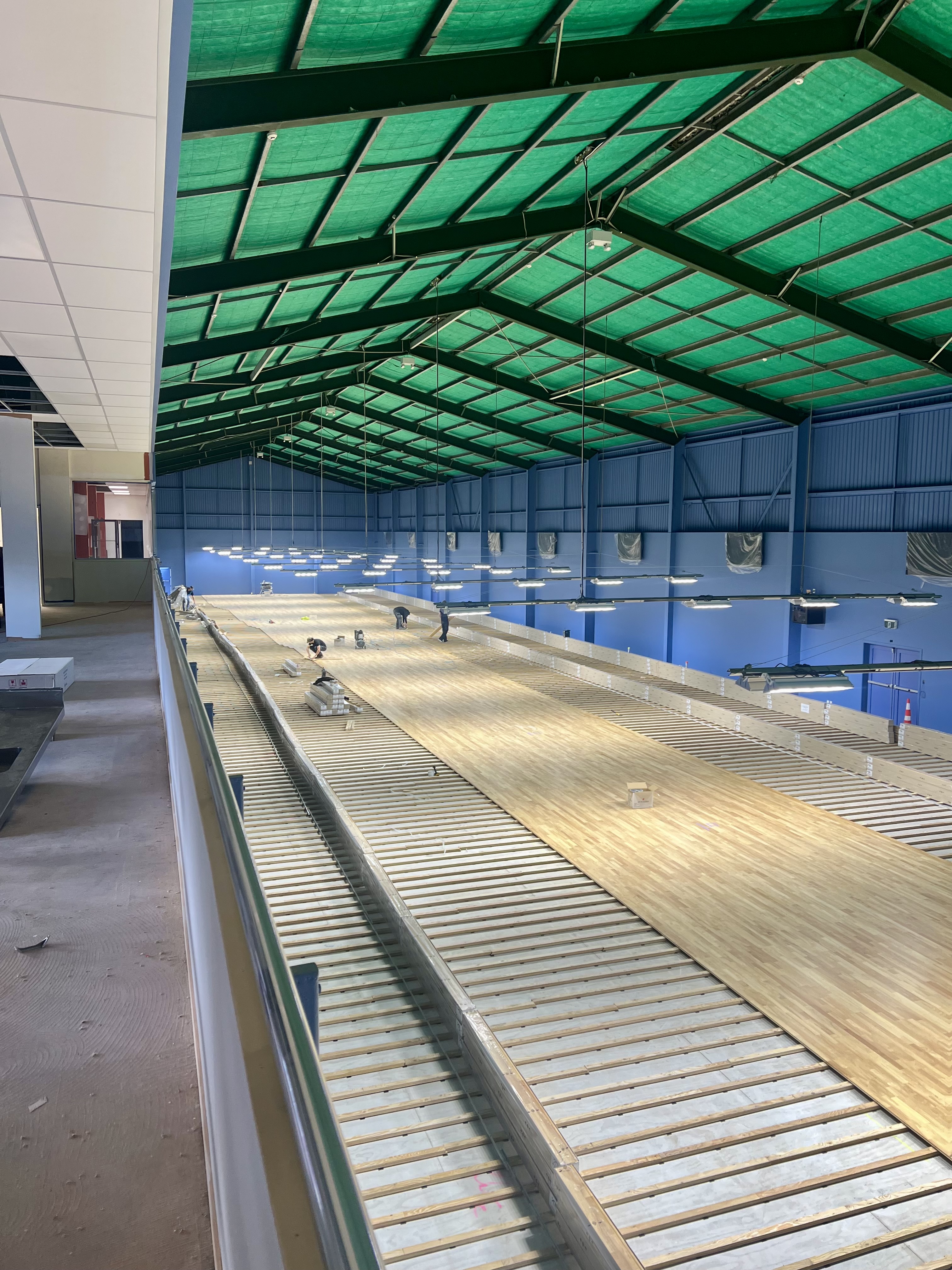 De lundi à vendredi, je continue de bosser sur le chantier du gymnase de badminton. Après avoir terminé l’installation des linteaux, on passe à la pose du parquet. Mon job consiste à fixer les lames avec un pistolet à clous. Plus les jours passent, plus la fatigue et les douleurs musculaires s’accumulent. J’ai l’impression que ce chantier ne se terminera jamais, avec ces 1 250 m² de gymnase qui s’étendent devant moi.