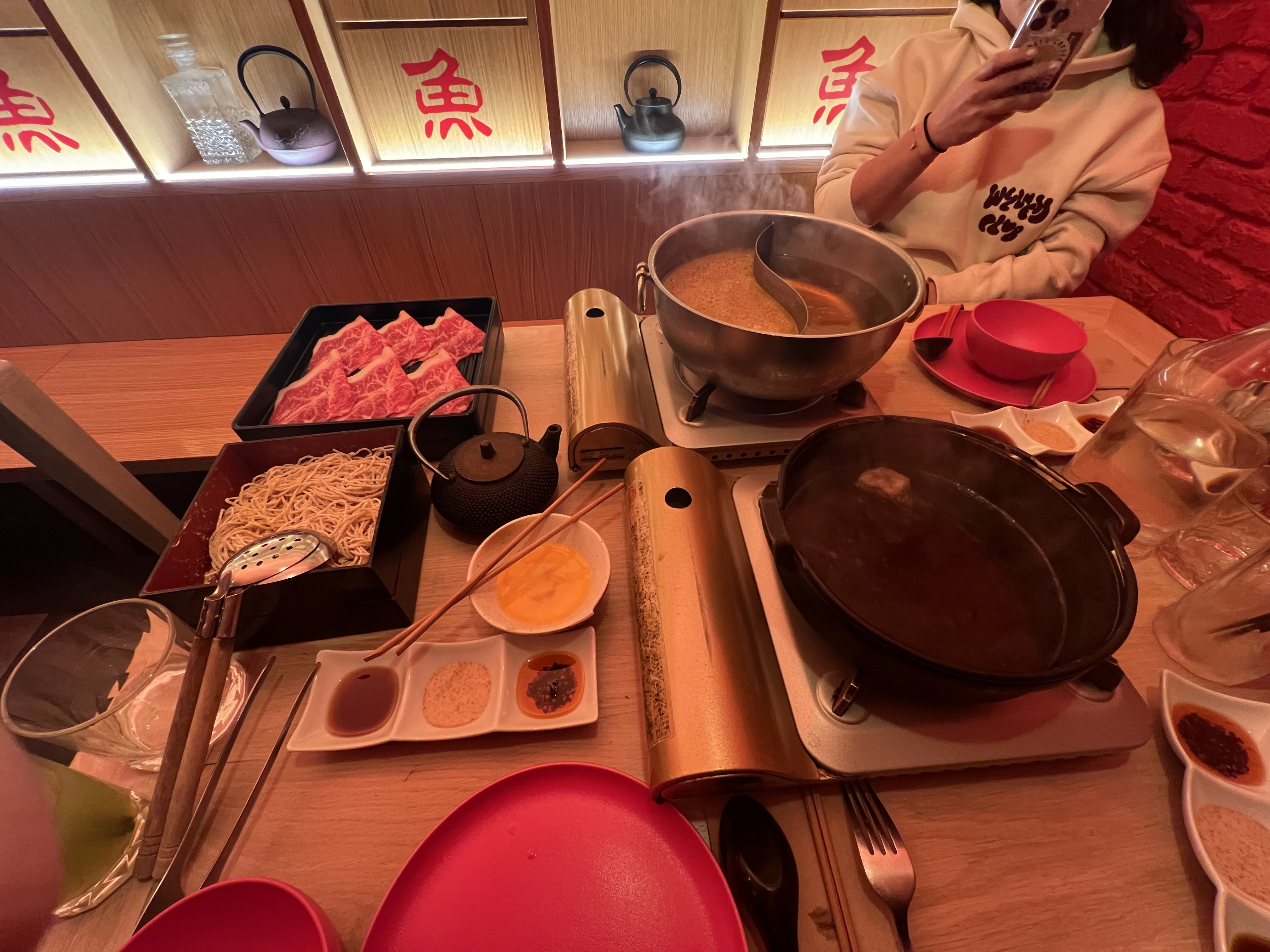 Samedi, je découvre les saveurs du Japon avec Aselle et Tim. Nous nous rendons dans un restaurant japonais pour déguster le fameux shabu-shabu, un plat traditionnel où de fines tranches de bœuf sont plongées dans un bouillon fumant, accompagnées de tofu et de légumes croquants. Une fois la viande et les légumes terminés, on ajoute des nouilles udon pour conclure le repas. Résultat : un vrai délice, du début à la fin.